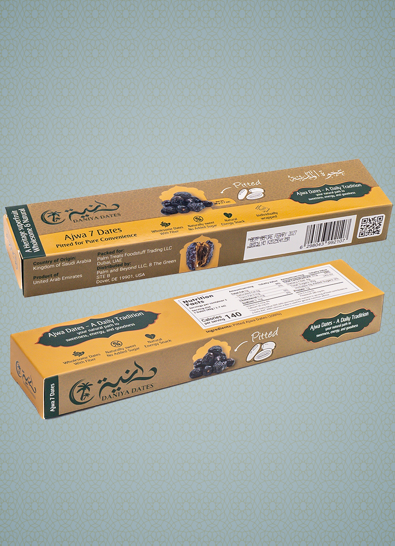 Each pitted Ajwa date is individually wrapped to ensure freshness, hygiene, and convenience. Perfect for daily enjoyment, sharing, or thoughtful gifting, these dates combine premium quality with authentic tradition. All dates are grown in Madinah and carefully packed in the UAE to ensure both authenticity and freshness.