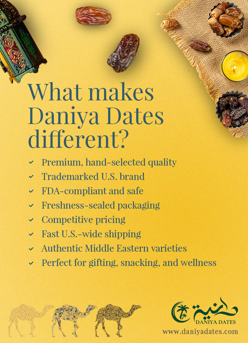 They have a uniform dark brown color and a pleasant, chewy, yet soft consistency. The flavor profile is often described as having a distinctive, balanced, caramel-like sweetness with earthy undertones. The Daniya packaging highlights them as Velvety. Robust. Pure, and a 100% Plant-Based Superfruit, Naturally Sweet, and a Source of Fiber with No Added Sugar.